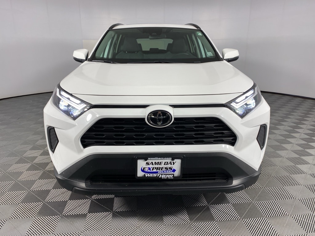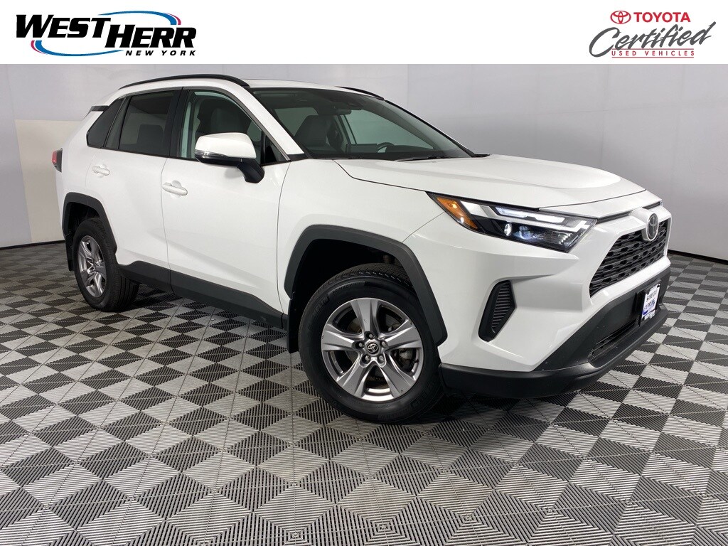 Certified. 2022 Toyota RAV4 XLE White Clean CARFAX. CARFAX One-Owner. 4-Wheel Disc Brakes, 6 Speakers, AM/FM Stereo, Apple CarPlay/Android Auto, Automatic temperature control, Bumpers: body-color, Driver door bin, Dual front impact airbags, Dual front side impact airbags, Electronic Stability Control, Emergency communication system: Safety Connect with 1-year trial, Exterior Parking Camera Rear, Fabric Seat Trim, Four wheel independent suspension, Front Bucket Seats, Front Center Armrest, Front dual zone A/C, Fully automatic headlights, Heated door mirrors, Illuminated entry, Knee airbag, Occupant sensing airbag, Overhead airbag, Passenger vanity mirror, Power driver seat, Remote keyless entry, Roof rack: rails only, Split folding rear seat, Steering wheel mounted audio controls, Tachometer, Telescoping steering wheel, Tilt steering wheel, Traction control, Trip computer, Turn signal indicator mirrors. Odometer is 12885 miles below market average! 27/33 City/Highway MPG
