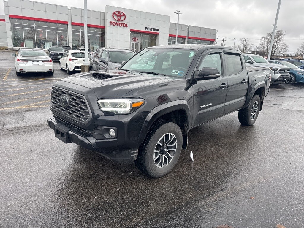 2022 Toyota Tacoma TRD Sport V6 Black Clean CARFAX. 120V/400W Deck Mounted AC Power, 6 Speakers, ABS brakes, Air Conditioning, AM/FM radio: SiriusXM, Apple CarPlay/Android Auto, Auto High-beam Headlights, Auto-dimming Rear-View mirror, Color-Keyed Overfenders, Driver door bin, Dual front impact airbags, Dual front side impact airbags, Electronic Stability Control, Exterior Parking Camera Rear, Fabric Seat Trim (FD), Front anti-roll bar, Front Bucket Seats, Front Center Armrest, Front dual zone A/C, Front fog lights, Front Seats, Garage door transmitter: HomeLink, Heated door mirrors, Knee airbag, Leather Shift Knob, Low tire pressure warning, Occupant sensing airbag, Overhead airbag, Overhead console, Panic alarm, Power driver seat, Power windows, Speed-sensing steering, Split folding rear seat, Steering wheel mounted audio controls, Tachometer, Telescoping steering wheel, Tilt steering wheel, Trip computer.