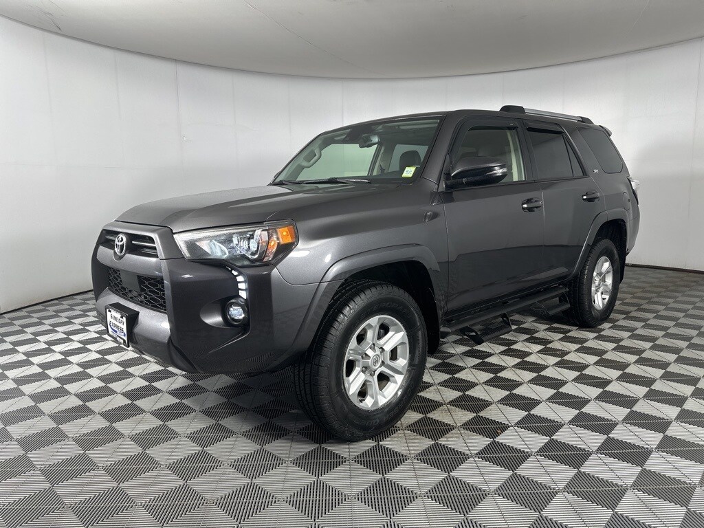 2023 Toyota 4Runner SR5 Premium Gray CARFAX One-Owner. 4-Wheel Disc Brakes, 8 Speakers, Apple CarPlay/Android Auto, Brake assist, Compass, Driver door bin, Dual front impact airbags, Dual front side impact airbags, Exterior Parking Camera Rear, Front anti-roll bar, Front Bucket Seats, Front Center Armrest, Front fog lights, Front reading lights, Garage Door Opener, Heated door mirrors, Heated Front Bucket Seats, Heated front seats, Illuminated entry, Knee airbag, Leather steering wheel, Occupant sensing airbag, Overhead airbag, Overhead console, Panic alarm, Passenger door bin, Power door mirrors, Power passenger seat, Power steering, Radio: Premium Audio w/Dynamic Navigation, SofTex Seat Trim, Speed control, Speed-sensing steering, Split folding rear seat, Spoiler, Steering wheel mounted audio controls, Tachometer, Telescoping steering wheel, Tilt steering wheel, Trip computer.