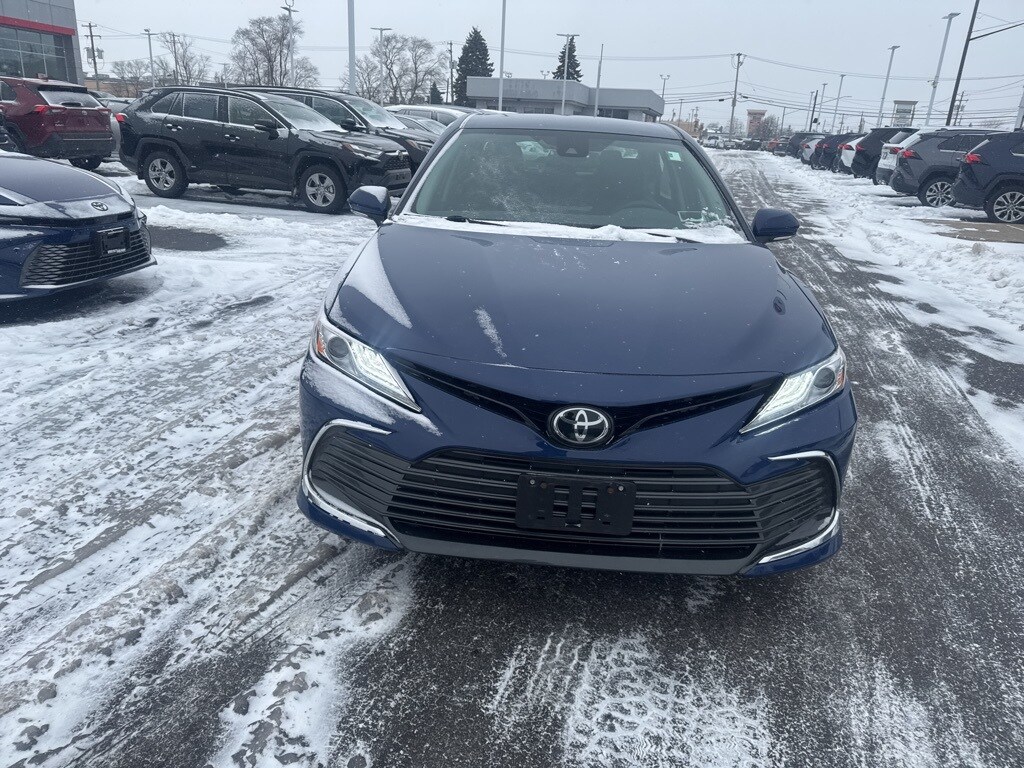 2023 Toyota Camry XLE Blue Clean CARFAX. CARFAX One-Owner. 4-Wheel Disc Brakes, 6 Speakers, Air Conditioning, Apple CarPlay/Android Auto, Driver door bin, Dual front impact airbags, Dual front side impact airbags, Four wheel independent suspension, Front Bucket Seats, Front Center Armrest, Front dual zone A/C, Garage door transmitter: HomeLink, Heated door mirrors, Heated front seats, Illuminated entry, Knee airbag, Leather steering wheel, Occupant sensing airbag, Outside temperature display, Overhead airbag, Passenger vanity mirror, Perforated Leather Seat Trim, Power driver seat, Power passenger seat, Power windows, Radio data system, Radio: Audio Plus, Rear reading lights, Rear side impact airbag, Speed control, Split folding rear seat, Steering wheel mounted audio controls, Tachometer, Telescoping steering wheel, Tilt steering wheel, Traction control, Trip computer, Turn signal indicator mirrors. 25/34 City/Highway MPG