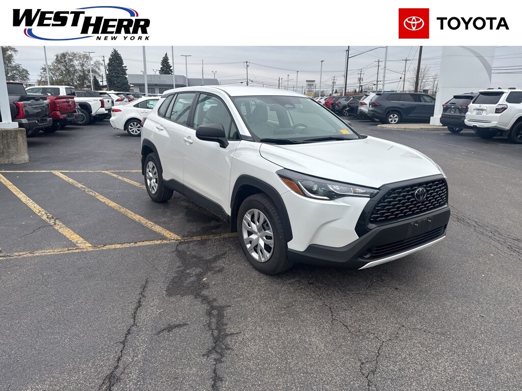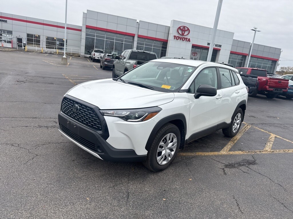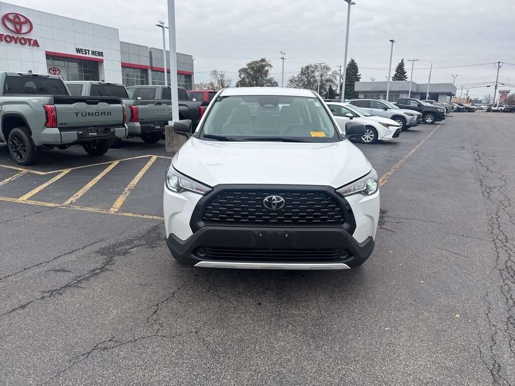 Certified. 2023 Toyota Corolla Cross L Blue Clean CARFAX. CARFAX One-Owner. 6 Speakers, ABS brakes, Brake assist, Bumpers: body-color, Driver vanity mirror, Dual front impact airbags, Dual front side impact airbags, Fabric Seat Trim, Four wheel independent suspension, Front Bucket Seats, Front Center Armrest, Heated door mirrors, Illuminated entry, Knee airbag, Occupant sensing airbag, Overhead airbag, Panic alarm, Power steering, Radio data system, Radio: 8" Toyota Multimedia, Rear side impact airbag, Rear window defroster, Remote keyless entry, Speed control, Split folding rear seat, Steering wheel mounted audio controls, Tachometer, Telescoping steering wheel, Tilt steering wheel. 29/32 City/Highway MPG
