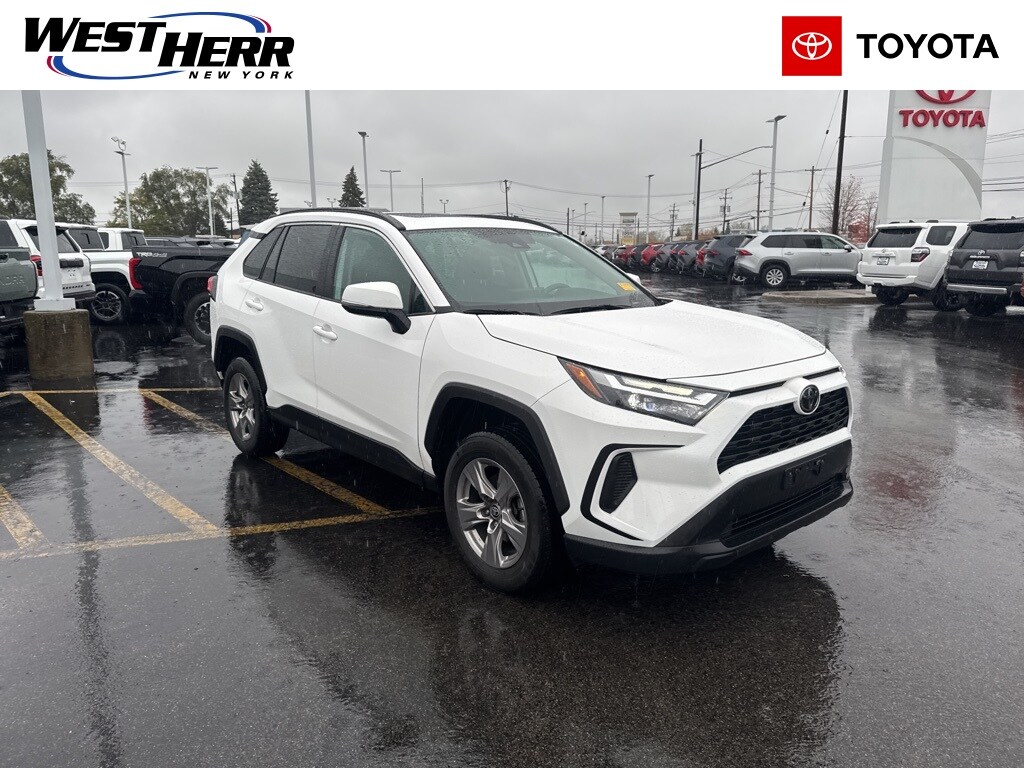 2023 Toyota RAV4 XLE White Clean CARFAX. CARFAX One-Owner. 4-Wheel Disc Brakes, 6 Speakers, Air Conditioning, Auto High-beam Headlights, Automatic temperature control, Brake assist, Bumpers: body-color, Driver door bin, Dual front impact airbags, Dual front side impact airbags, Exterior Parking Camera Rear, Fabric Seat Trim, Four wheel independent suspension, Front Bucket Seats, Front Center Armrest, Front reading lights, Fully automatic headlights, Heated door mirrors, Knee airbag, Occupant sensing airbag, Outside temperature display, Overhead airbag, Passenger door bin, Passenger vanity mirror, Power door mirrors, Power driver seat, Power steering, Radio data system, Radio: AM/FM/XM Audio System, Rear window defroster, Remote keyless entry, Split folding rear seat, Steering wheel mounted audio controls, Tachometer, Telescoping steering wheel, Tilt steering wheel, Traction control, Trip computer, Turn signal indicator mirrors. 27/33 City/Highway MPG