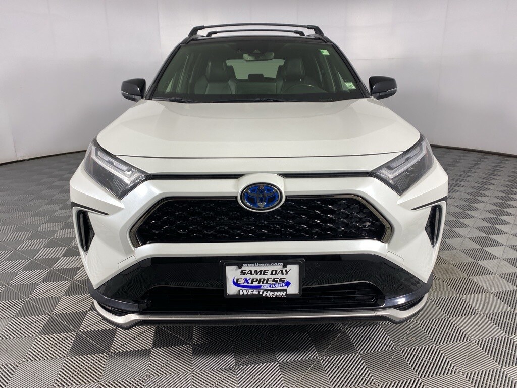 2023 Toyota RAV4 Prime XSE White CARFAX One-Owner. 11 Speakers, 4-Wheel Disc Brakes, Air Conditioning, Auto High-beam Headlights, Brake assist, Dual front impact airbags, Dual front side impact airbags, Exterior Parking Camera Rear, Four wheel independent suspension, Front dual zone A/C, Fully automatic headlights, JBL Audio System, Knee airbag, Navigation system: Drive Connect Cloud Navigation (1-year trial subscription), Occupant sensing airbag, Overhead airbag, Panic alarm, Power driver seat, Power moonroof, Power windows, Radio data system, Rear window defroster, Steering wheel mounted audio controls, Traction control.
