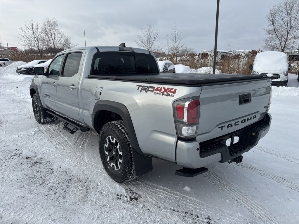 Silver 2023 Toyota Tacoma TRD Sport V6 4WD 6-Speed Automatic 3.5L V6 120V/400W Deck Mounted AC Power, Apple CarPlay/Android Auto, Auto Headlights, Auto-dimming Rear-View mirror, Auto-Dimming Rearview Mirror w/HomeLink, Blind Spot Monitor w/Rear Cross Traffic Alert, Color-Keyed Rear Bumper, Engine Immobilizer, Exterior Parking Camera Rear, Front Bucket Seats, Front fog lights, Heated door mirrors, Heated Front Seats, Leather Seat Trim, Leather Shift Knob, Mesh Front Grille, Power driver seat, Power Tilt/Slide Moonroof, Radio: Premium JBL Audio w/Dynamic Navigation, Rear Parking Assist Sonar, Remote keyless entry, Split folding rear seat, Steering wheel mounted audio controls, Technology Package, Tonneau Cover, TRD Premium Sport Package, USB Power Port (TMS).