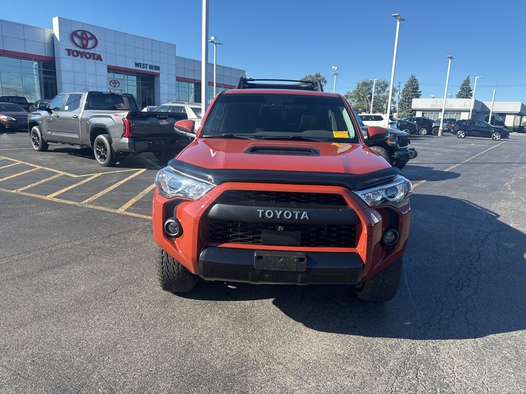 2024 Toyota 4Runner TRD Pro Orange Clean CARFAX. CARFAX One-Owner. 15 Speakers, 4-Wheel Disc Brakes, ABS brakes, Air Conditioning, Anti-whiplash front head restraints, Auto High-beam Headlights, Auto-dimming Rear-View mirror, Bumpers: body-color, Compass, Driver vanity mirror, Dual front impact airbags, Dual front side impact airbags, Dual Zone Auto Climate Control, Electronic Stability Control, Exterior Parking Camera Rear, Fox Shocks, Front anti-roll bar, Front Bucket Seats, Front Center Armrest, Front dual zone A/C, Front fog lights, Garage Door Opener, Heated Front Bucket Seats, Heated front seats, Heated Outside Rear-View Mirrors, Illuminated entry, Multi-Terrain Back Monitor, Occupant sensing airbag, Overhead airbag, Overhead console, Power door mirrors, Power moonroof, Power passenger seat, Power steering, Power windows, Radio: Premium Audio w/JBL, Rear anti-roll bar, Rear window defroster, SofTex Seat Trim, Split folding rear seat, Spoiler, Steering wheel mounted audio controls, Tachometer, Telescoping steering wheel, Tilt steering wheel, Traction control, TRD Pro All Weather Floor Liner, TRD Pro Badging, TRD Shift Knob, Trip computer.