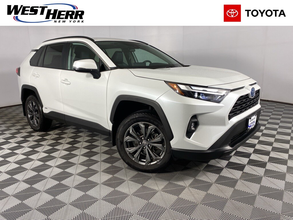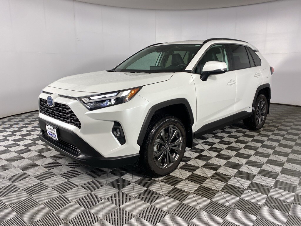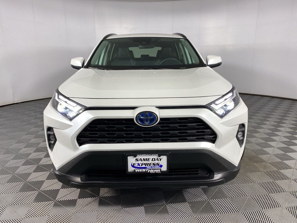 Certified. 2024 Toyota RAV4 Hybrid XLE Premium White Clean CARFAX. CARFAX One-Owner. 6 Speakers, ABS brakes, Air Conditioning, Brake assist, Bumpers: body-color, Delay-off headlights, Driver door bin, Driver vanity mirror, Dual front impact airbags, Dual front side impact airbags, Four wheel independent suspension, Front Bucket Seats, Front dual zone A/C, Front fog lights, Front reading lights, Fully automatic headlights, Heated door mirrors, Knee airbag, Leather Shift Knob, Leather steering wheel, Occupant sensing airbag, Overhead airbag, Overhead console, Power driver seat, Power moonroof, Power steering, Radio data system, Radio: AM/FM/XM Audio System, Rear window defroster, SofTex Seat Trim, Split folding rear seat, Spoiler, Telescoping steering wheel, Tilt steering wheel, Traction control, Trip computer, Turn signal indicator mirrors. Odometer is 13479 miles below market average! 41/38 City/Highway MPG