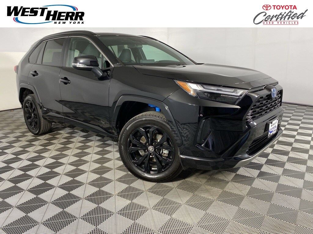 Certified. 2024 Toyota RAV4 Hybrid SE Black Clean CARFAX. CARFAX One-Owner. 4-Wheel Disc Brakes, Air Conditioning, AM/FM radio: SiriusXM, Bumpers: body-color, Driver door bin, Dual front impact airbags, Dual front side impact airbags, Fabric Seat Trim, Front Bucket Seats, Front Center Armrest, Front dual zone A/C, Front reading lights, Heated door mirrors, Knee airbag, Leather Shift Knob, Occupant sensing airbag, Outside temperature display, Overhead airbag, Overhead console, Power steering, Power windows, Radio data system, Radio: AM/FM/XM Audio System, Rear seat center armrest, Rear window defroster, Split folding rear seat, Spoiler, Telescoping steering wheel, Tilt steering wheel, Traction control, Trip computer. 41/38 City/Highway MPG