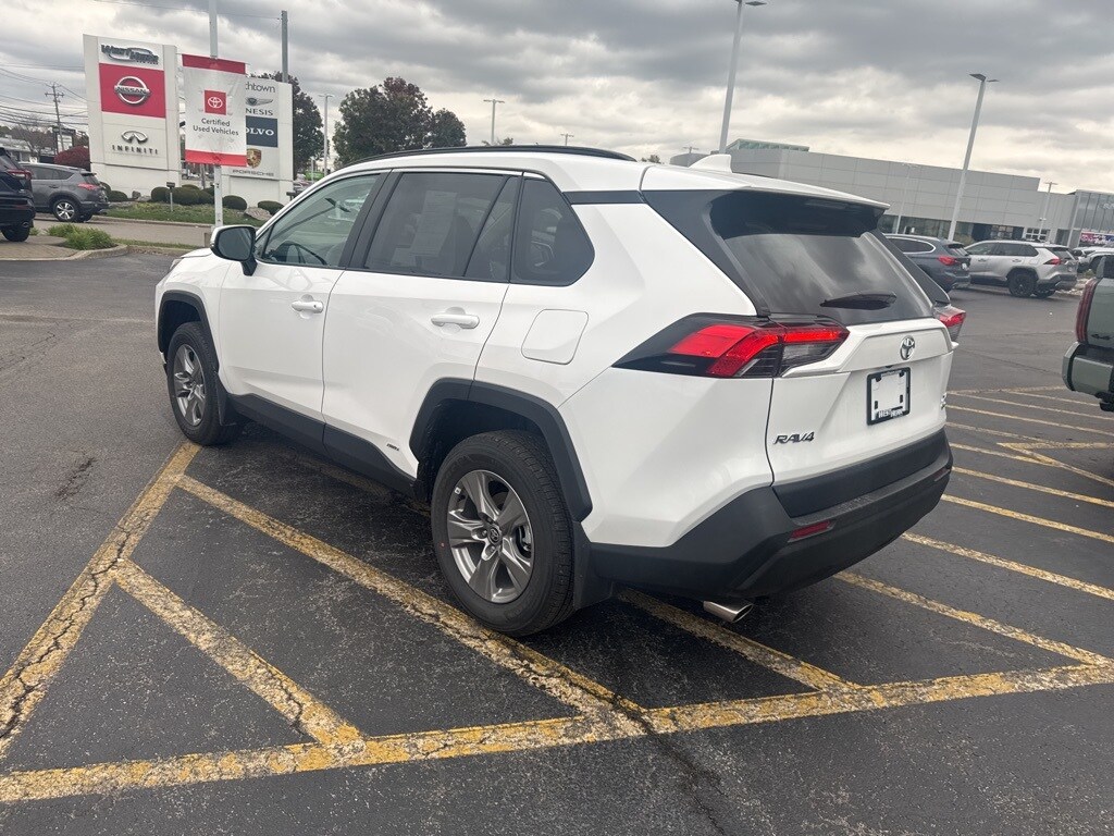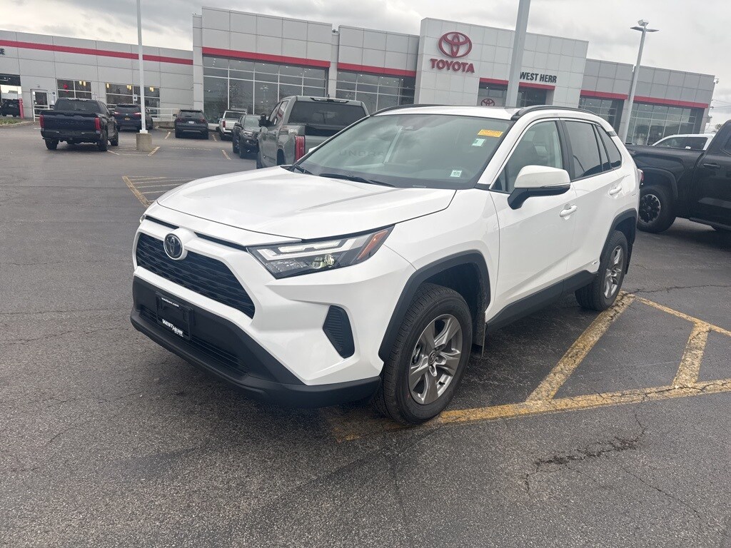Certified. 2025 Toyota RAV4 Hybrid XLE White Clean CARFAX. 4-Wheel Disc Brakes, 6 Speakers, Air Conditioning, Auto High-beam Headlights, Bumpers: body-color, Driver door bin, Dual front impact airbags, Dual front side impact airbags, Electronic Stability Control, Exterior Parking Camera Rear, Fabric Seat Trim, Four wheel independent suspension, Front Bucket Seats, Front Center Armrest, Front dual zone A/C, Fully automatic headlights, Heated door mirrors, Illuminated entry, Knee airbag, Occupant sensing airbag, Outside temperature display, Overhead airbag, Panic alarm, Passenger vanity mirror, Power door mirrors, Power driver seat, Power windows, Radio data system, Radio: AM/FM/XM Audio System, Rear seat center armrest, Rear window defroster, Split folding rear seat, Steering wheel mounted audio controls, Telescoping steering wheel, Tilt steering wheel, Traction control, Trip computer, Turn signal indicator mirrors. 41/38 City/Highway MPG
