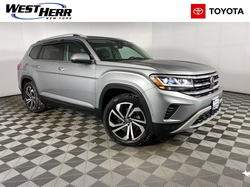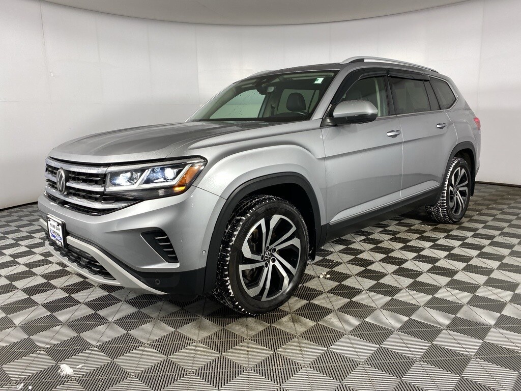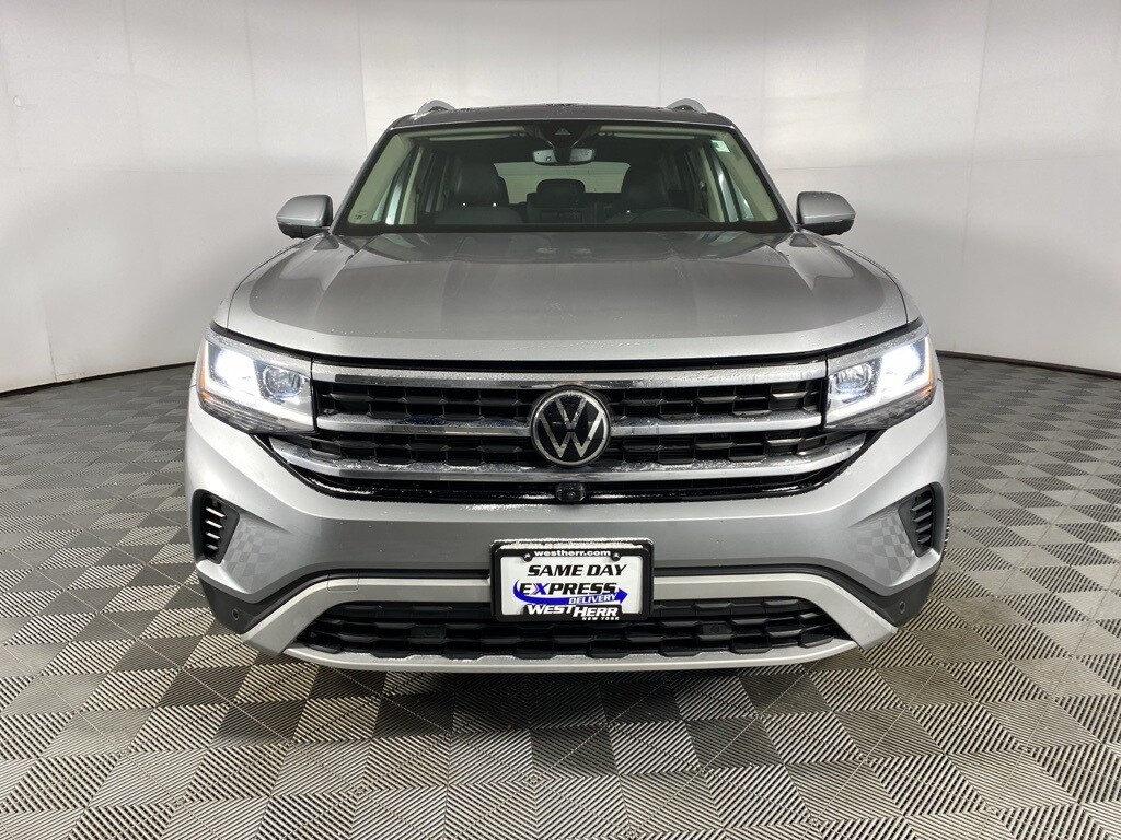 2021 Volkswagen Atlas SEL Premium Silver Clean CARFAX. 12 Speakers, 3rd row seats: split-bench, 4-Wheel Disc Brakes, Air Conditioning, Auto High-beam Headlights, Auto-dimming Rear-View mirror, Brake assist, Bumpers: body-color, Delay-off headlights, Driver door bin, Driver vanity mirror, Dual front impact airbags, Dual front side impact airbags, Four wheel independent suspension, Front anti-roll bar, Front Bucket Seats, Front Center Armrest, Front dual zone A/C, Front reading lights, Fully automatic headlights, Heated front seats, Heated rear seats, Htd/Actively Ventilated Comfort Front Sport Seats, Leather Shift Knob, Memory seat, Navigation System, Occupant sensing airbag, Overhead airbag, Overhead console, Perforated Vienna Leather Seating Surfaces, Power door mirrors, Power driver seat, Power Liftgate, Power moonroof, Power passenger seat, Power windows, Rear audio controls, Rear reading lights, Rear seat center armrest, Rear window defroster, Security system, Speed control, Split folding rear seat, Spoiler, Standard Suspension, Steering wheel mounted audio controls, Tachometer, Telescoping steering wheel, Tilt steering wheel, Traction control, Trip computer, Ventilated front seats.
