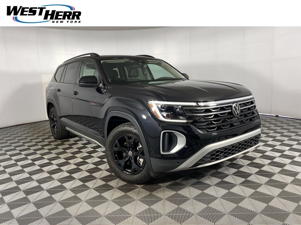 Certified. 2024 Volkswagen Atlas 2.0T Peak Edition SEL Deep Black Auto High-beam Headlights, Automatic temperature control, Brake assist, Electronic Stability Control, Exterior Parking Camera Rear, Four wheel independent suspension, Front fog lights, Fully automatic headlights, Heads-Up Display, Heated door mirrors, Heated front seats, Heated steering wheel, Heated/Actively Ventilated Front Bucket Seats, Illuminated entry, Low tire pressure warning, Memory seat, Navigation System, Occupant sensing airbag, Outside temperature display, Power door mirrors, Power driver seat, Power Liftgate, Power moonroof: Panoramic, Rain sensing wipers, Remote keyless entry, Security system, Speed control, Split folding rear seat, Steering wheel mounted audio controls, Telescoping steering wheel, Ventilated front seats. Volkswagen Certified Pre-Owned Details: