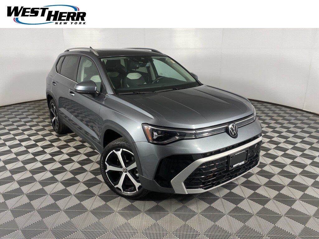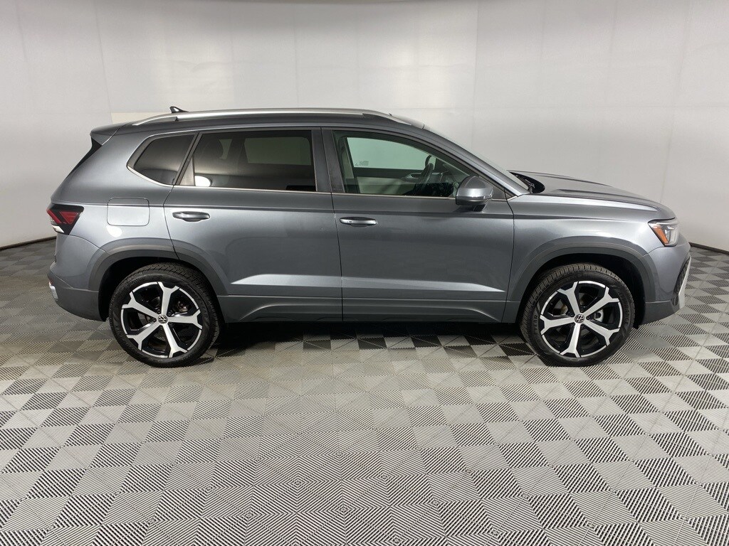 Certified. 2025 Volkswagen Taos 1.5T SEL Platinum Gray Metallic Active Blind Spot Monitor, Auto High-beam Headlights, Auto-dimming Rear-View mirror, Four wheel independent suspension, Front dual zone A/C, Fully automatic headlights, Heated & Actively Ventilated Front Bucket Seats, Heated door mirrors, Heated front seats, Illuminated entry, Navigation system: VW Car-Net Guide & Inform, Power driver seat, Power moonroof, Remote keyless entry, Steering wheel mounted audio controls, Variably intermittent wipers, Ventilated front seats, Wheels: 19" 2-Tone Machined Alloy. 25/33 City/Highway MPG